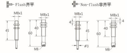 Thread size / 螺紋尺寸: M8 屏蔽式 / M8 非屏蔽式